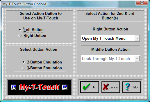 Select Mouse Button to use on My-T-Touch Here you define which button on your Mouse is going to be used as a point-and-click button. This button will be the execution button.